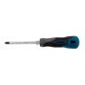 Отвертка торговой марки GROSS изготовлена из высококачественной инструментальной стали S2. Предназначена отвертка для монтажа/демонтажа резьбовых соединений с крестообразным типом шлица и дополнительными направляющими (PZ2). Насечки на жале увеличивают трение между отверткой и шлицом крепежа, что исключает возможность повреждения шлица. На стержень отвертки длиной 100 мм нанесено хромовое защитное покрытие, которое защищает металл от коррозии. Трехкомпонентная рукоятка длиной 109 мм, имеющая запатентованную форму, удобно и надежно фиксируется в руке. Твердость рабочих частей отвертки (стержень, рукоятка) составляет 56 HRC, максимально крутящий момент затяжки — 8,2 H*m. Снабжена отвертка подвесной картой, удобной для размещения инструмента на стенде.