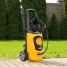 Моечная машина высокого давления Denzel R-170D 58229 с барабаном, мощностью 2000 Вт и производительностью 360 л/ч, подает струю воды под давлением 170 бар и используется для очищения поверхностей. Позволяет быстро удалить загрязнения с кузова автомобиля, мотоцикла, велосипеда, садового и хозяйственного инвентаря, очистить садовую дорожку и террасу, а также стены и окна строений. Источником воды может служить водопроводная линия, а также любая емкость — машина способна работать в режиме самовсасывания. Мойка пригодится владельцам загородных участков.ПреимуществаНадежность — двигатель с медной обмоткой обеспечивает стабильную работу моечной машины даже при высоких нагрузках.Защита от перегрева — термозащита отключает двигатель в случае перегрузки, предохраняя его от поломки.Высокий ресурс — алюминиевая помпа рассчитана на интенсивное использование.Экологичность — машина работает без вредных выхлопов и неприятных запахов.Система фильтрации — вода поступает без посторонних примесей, что увеличивает срок службы машины.Класс защиты II — двойная изоляция токопроводящих элементов надежно защищает пользователя от поражения электрическим током.Установка оптимального вида распыления — насадка-удлинитель оснащена регулируемым соплом.Блокировка рычага пистолета — защита от случайного запуска обеспечивает безопасность пользователя.Комфортная работа в труднодоступных местах — насадка-удлинитель позволяет очистить самые удаленные уголки.Эффективная работа — можно использовать моющее средство, для которого предусмотрен встроенный бачок.Простое подключение — быстросъемный адаптер позволяет легко присоединить входной шланг.Длина шланга и кабеля 5 м — не нужно часто перемещать машину, можно работать на удалении от розетки.Несложный уход — в комплект поставки входит игла для прочистки сопла.Удобная эксплуатация — катушка позволяет вытягивать шланг на нужную длину.Мобильность — мойка оснащена колесами и ручкой для удобного перемещения.Гарантия 3 года — высокое качество машины подтверждена производителем.