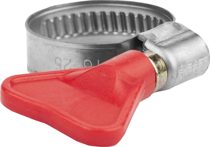 Хомут червячный состоит из накатной ленты и замка с пластиковым ключом;