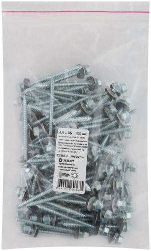 Шурупы кровельные остроконечные некрашенные 4.8 х 65 100 шт Фасовка ( 23265-0 )