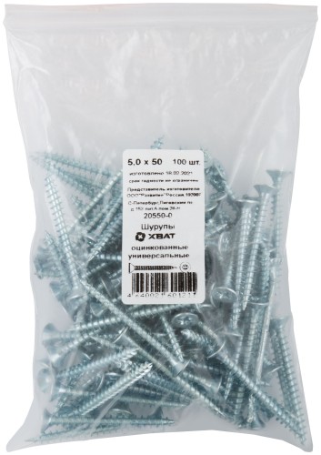 Шурупы оцинкованные, универсальные 5 х 50 100 шт Фасовка ( 20550-0 )