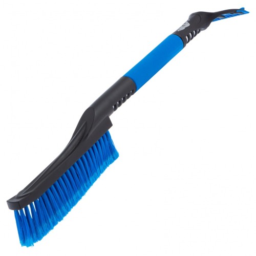 Легкая щетка средних размеров со скребком из жесткого полимера. Удобный размер и эргономичный дизайн. Упругая, распушенная щетина. Теплая ручка.