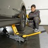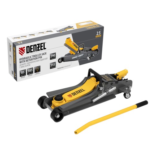 Гидравлический подкатной домкрат Denzel 51232 с фиксатором имеет высоту подхвата 85 мм и предназначен для плавного подъема грузов массой до 2,5 т на высоту до 385 мм. Страховочный штифт позволяет фиксировать подъемный рычаг на высоте 290 и 355 мм для безопасной работы. Домкрат пригодится владельцам легковых автомобилей с низким и стандартным клиренсом.ПреимуществаЗащита от поломки — предохранительный клапан не допускает подъема груза массой более 2,5 т.Аккуратная работа — резиновая опора защищает днище автомобиля от нежелательных повреждений.Комфортное перемещение — в верхней части корпуса имеется эргономичная рукоятка с подпальцевыми выемками.