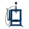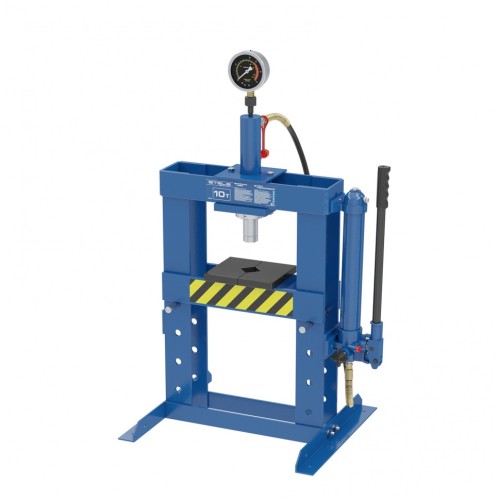 Гидравлический настольный пресс Stels 52305, 10 т, с манометром — оборудование для запрессовки и выпрессовки деталей, например, подшипников, втулок, сайлентблоков, рычагов, штифтов. Устанавливается на рабочий стол и фиксируется на нем — в опорах имеются отверстия для крепежей. Отличается плавным ходом штока благодаря высокому качеству исполнения гидронасоса и самого штока. Величину прилагаемого усилия можно контролировать при помощи глицеринозаполненного манометра. Пресс пригодится в автомастерской или личном гараже.