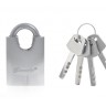 Замок навесной предназначен для запирания хозяйственных помещений, гаражей, складов, подвалов и т.д. Корпус : Сталь Покрытие корпуса: Хромированное Материал исполнения дужки: стальная с хромированным покрытием Количество ключей: 4. Материал исполнения секретного механизма: Сталь с латунным покрытием.