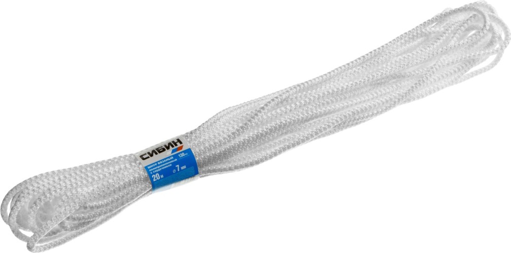 Шнур вязаный полипропиленовый СИБИН с сердечником, белый, длина 20 метров, диаметр 7 мм, ( 50257 )