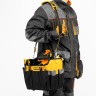 Переноска Denzel 90294 габаритами 260 х 240 х 300 мм, с наплечным ремнем, имеет вместительное основное отделение и 22 кармана. В ней можно разместить ручной и электроинструмент для хранения и транспортировки. Переноска пригодится в дороге, дома или в гараже.Преимущества Износостойкость — переноска изготовлена из прочного материала, устойчивого к истиранию. Крепкий каркас и металлическая ручка — изделие выдерживает значительный вес. Комфортная транспортировка — переноска комплектуется наплечным ремнем с усиленными карабинами, а на ручке имеется мягкая накладка.