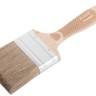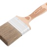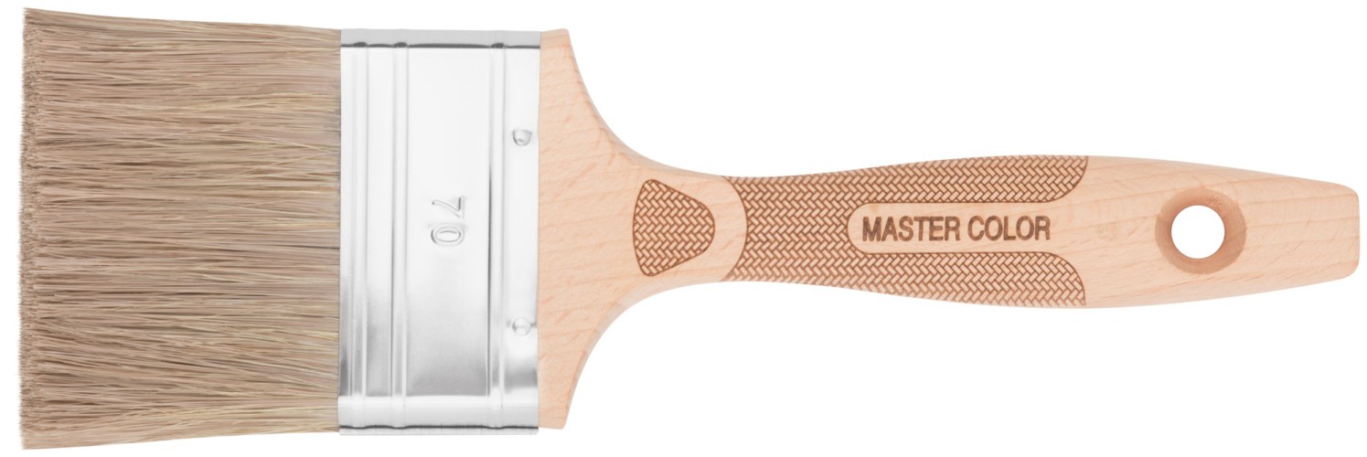 Высококачественный микс из темной натуральной и синтетической щетины, 75% топс. Оптимально подходит для лазурей, пропиток, антисептиков. Нержавеющий обжим. Эргономичная ручка из бука. Дополнительная фиксация обжима на заклепки. Буковая ручка