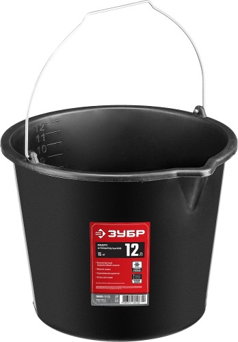 Ведро строительное пластмассовое, 12 л, высокопрочное, с носиком, ЗУБР, 06093-12_z02