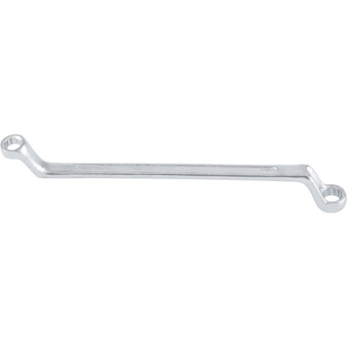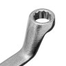 Накидные рабочие части ключа смещены относительно его рукоятки, что позволяет работать в труднодоступных местах.