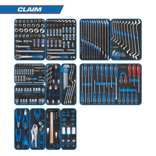 KING TONY Набор инструментов "CLAIM" для тележки, 13 ложементов, 286 предметов ( 934-286MRVD )