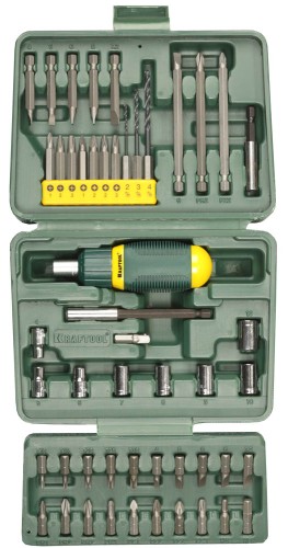 Набор KRAFTOOL Отвертка реверсивная с битами и торцовыми головками, 50 предметов, ( 25556-H50 )