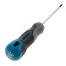 Отвертка торговой марки GROSS изготовлена из высококачественной инструментальной стали S2. Предназначена отвертка для монтажа/демонтажа резьбовых соединений с крестообразным типом шлица (PH0). Насечки на жале увеличивают трение между отверткой и шлицом крепежа, что исключает возможность повреждения шлица. На стержень отвертки длиной 75 мм нанесено хромовое защитное покрытие, которое защищает металл от коррозии. Трехкомпонентная рукоятка длиной 99 мм, имеющая запатентованную форму, удобно и надежно фиксируется в руке. Твердость рабочих частей отвертки (стержень, рукоятка) составляет 52 HRC, максимально крутящий момент затяжки — 1 H*m. Снабжена отвертка подвесной картой, удобной для размещения инструмента на стенде.