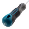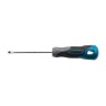 Отвертка торговой марки GROSS изготовлена из высококачественной инструментальной стали S2. Предназначена отвертка для монтажа/демонтажа резьбовых соединений с плоским типом шлица (SL4,0). Насечки на жале увеличивают трение между отверткой и шлицом крепежа, что исключает возможность повреждения шлица. На стержень отвертки длиной 100 мм нанесено хромовое защитное покрытие, которое защищает металл от коррозии. Трехкомпонентная рукоятка длиной 99 мм, имеющая запатентованную форму, удобно и надежно фиксируется в руке. Твердость рабочих частей отвертки (стержень, рукоятка) составляет 56 HRC, максимально крутящий момент затяжки — 5,5 H*m. Снабжена отвертка подвесной картой, удобной для размещения инструмента на стенде.
