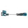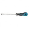 Отвертка торговой марки GROSS изготовлена из высококачественной инструментальной стали S2. Предназначена отвертка для монтажа/демонтажа резьбовых соединений с плоским типом шлица (SL8,0). Насечки на жале увеличивают трение между отверткой и шлицом крепежа, что исключает возможность повреждения шлица. На стержень отвертки длиной 150 мм нанесено хромовое защитное покрытие, которое защищает металл от коррозии. Трехкомпонентная рукоятка длиной 119 мм, имеющая запатентованную форму, удобно и надежно фиксируется в руке. Твердость рабочих частей отвертки (стержень, рукоятка) составляет 56 HRC, максимально крутящий момент затяжки — 11,5 H*m. Снабжена отвертка подвесной картой, удобной для размещения инструмента на стенде.