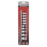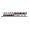 Головка торцевая, 10 мм - 1 шт.Головка торцевая, 11 мм - 1 шт.Головка торцевая, 12 мм - 1 шт.Головка торцевая, 13 мм - 1 шт.Головка торцевая, 14 мм - 1 шт.Головка торцевая, 16 мм - 1 шт.Головка торцевая, 17 мм - 1 шт.Головка торцевая, 19 мм - 1 шт.Головка торцевая, 22 мм - 1 шт.Головка торцевая, 24 мм - 1 шт.Металлическая плашка-держатель - 1 шт.
