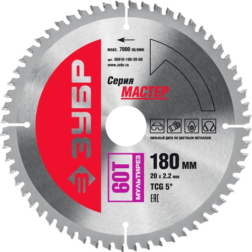 Диск пильный "Точный-МУЛЬТИ рез" по алюминию,180x20, 60Т, ЗУБР, ( 36916-180-20-60 )