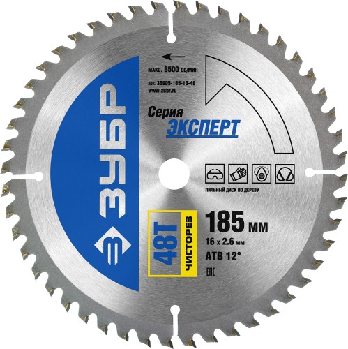 Диск пильный "Чистый рез" по дереву, усиленный, 185х16мм, 48Т, ЗУБР, ( 36905-185-16-48 )
