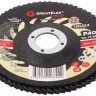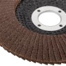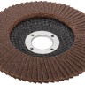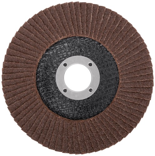 Предназначен для УШМ, посадка 22,23 мм. Наполняемость круга 72 лепестка (28x17мм) с углом наклона 10 градусов, что позволяет увеличить площадь контакта с поверхностью. Используется для обработки различных поверхностей: металл, дерево, пластик. Материал: инструментальная сталь, тканевая основа, абразивный материал.