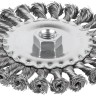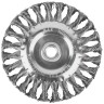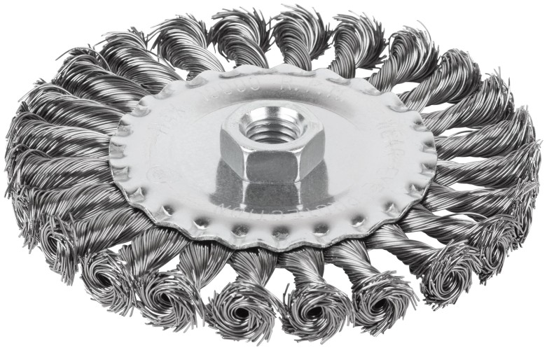 Щетка для УШМ, тип «Плоская». Предназначена для очистки различных металлических и деревянных поверхностей, снятия ржавчины, удаления лакокрасочных покрытий и других загрязнений. Тип «Плоская» оптимально подходит для обработки углов, пазов, изгибов и других труднодоступных участков. Грубая зачистка, стальная проволока 0,5мм.