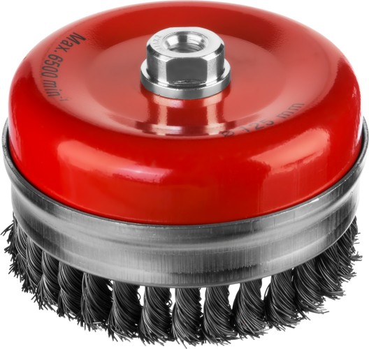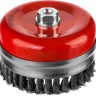 Щетка чашечная усиленная для УШМ, жгутированная стальная проволока 0,5 мм, d=125 мм, MIRAX, ( 35144-125 )