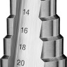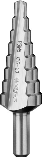 Сверло ЗУБР ступенчатое по сталям и цвет. мет. ст. Р6М5, d=6-20мм, 8ступ. d=6-8-10-12-14-16-18-20, L-75мм, 3-х гран.хв. 8мм, ( 29670-6-20-8_z01 )