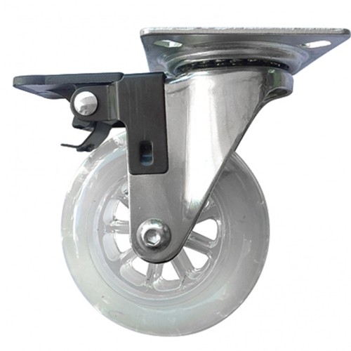 Колесо ПУ прозрачное поворотное с тормозом d-75 мм, крепление платформенное Сибртех ( 68738 )