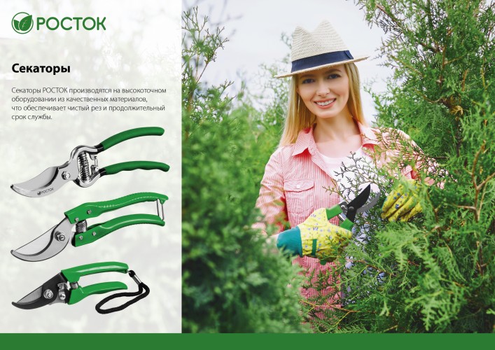 PC-75 Секатор с пластиковыми рукоятками, плоскостной, 195 мм, РОСТОК, ( 423011 )