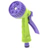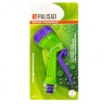 Пистолет-распылитель со штуцерной посадкой и курком, расположенным сзади. Оснащен регулируемой форсункой, что обеспечивает семь режимов полива: душ, режим задействования всех отверстий, мелкий туман, плоско-вертикальную струю, плоско-горизонтальную струю, туман, жесткую струя. Имеет фиксатор курка для непрерывной работы.