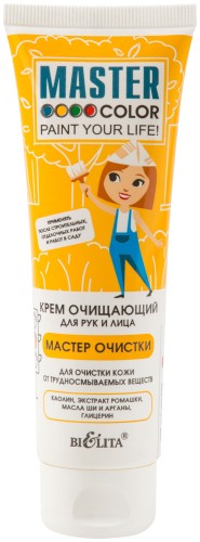 Крем очищающий для рук и лица "Мастер очистки". Для очистки кожи от лаков, в том числе на основе растворителя , краски, шпатлевки, цементосодержащих материалов, бензина, жира и д.р Содержит: масло ши, масло арганы, экстрат ромашки, каолин, очищающие компоненты.