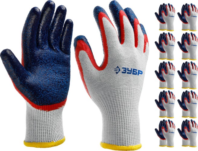 ЗУБР ЗАХВАТ-2, размер L-XL, перчатки с двойным текстурированным нитриловым обливом, 10 пар в упаковке ( 11454-K10 )